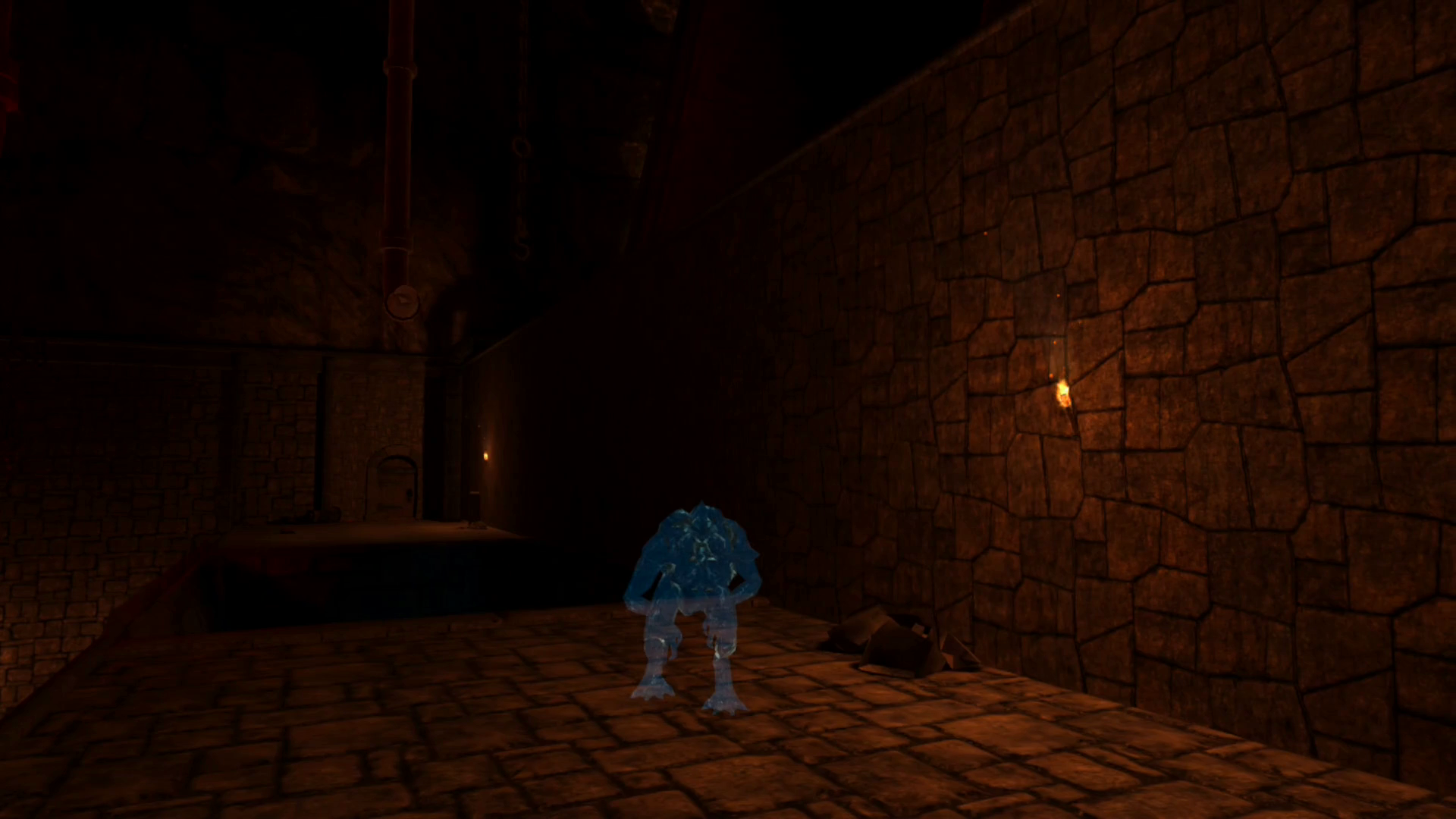 Step off the platform, but don't move too far. There's an Evolved Crawler lurking by the pool of water. Best way to combat it is to shoot some ice toward the right corner of the water until you hit it. This will briefly freeze it, but more importantly make it visible. Once you can see it, start blasting away with fire until it's defeated. In the PCVR version, this does not seem to work. But it does cast a shadow now, so you can use that to orient your fireballs. After the threat has been taken care of, turn around and shoot some breakable objects for two clusters of Gold Coins.