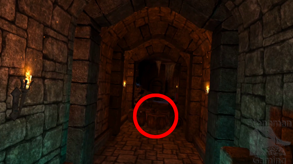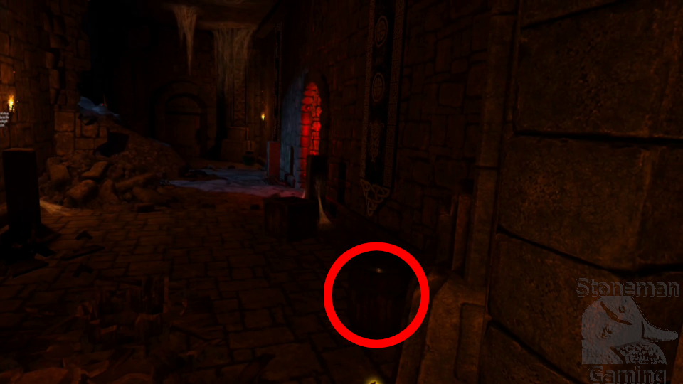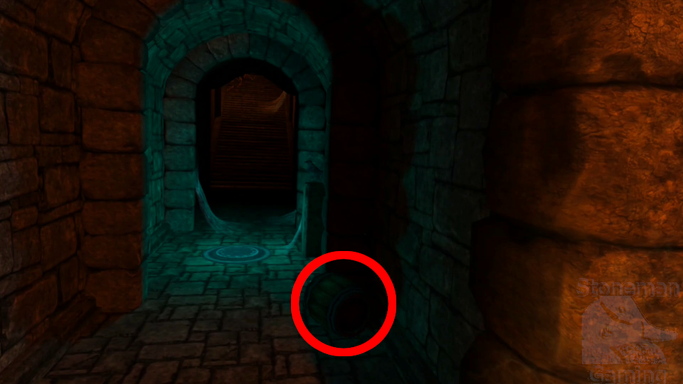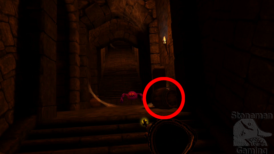 - After passing the first magic missile hall and crossing the large chasm, break the barrel near the Save Point.