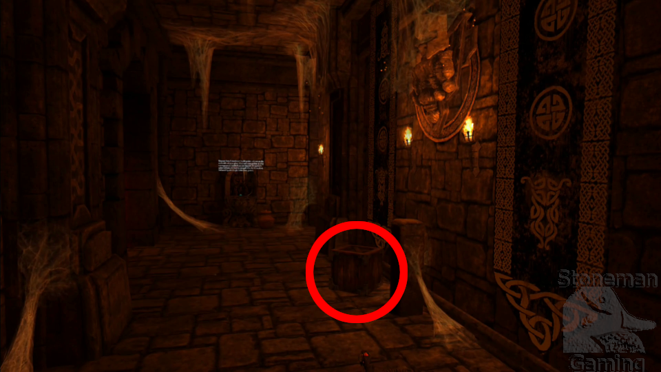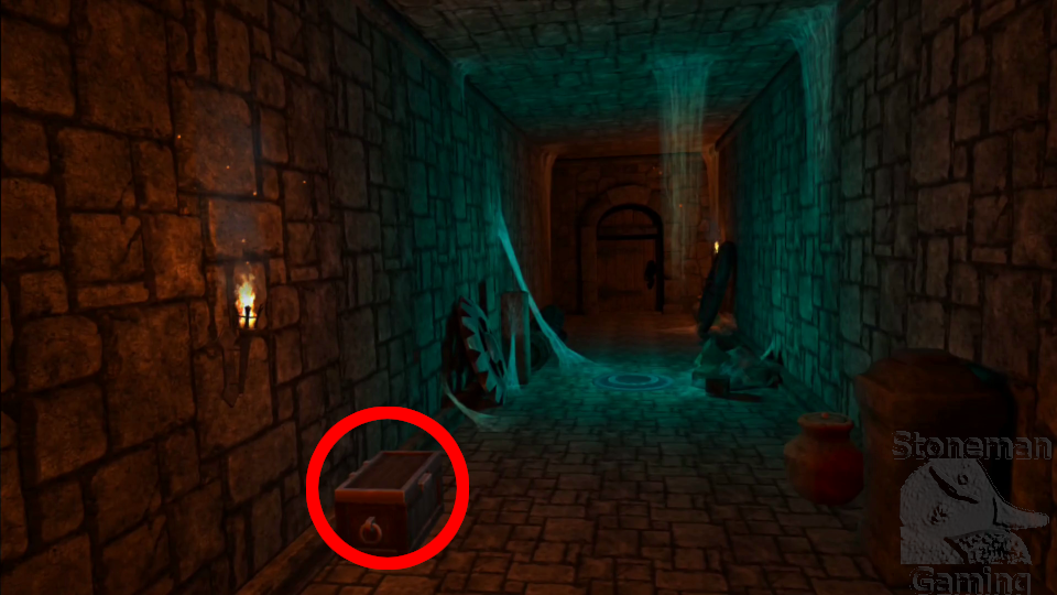 - As you enter the second magic missile hallway, there's a crate to the right that contains coins. Further down the hall, break the first barrel to find more coins.