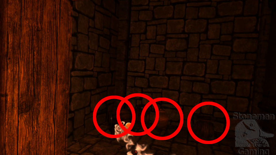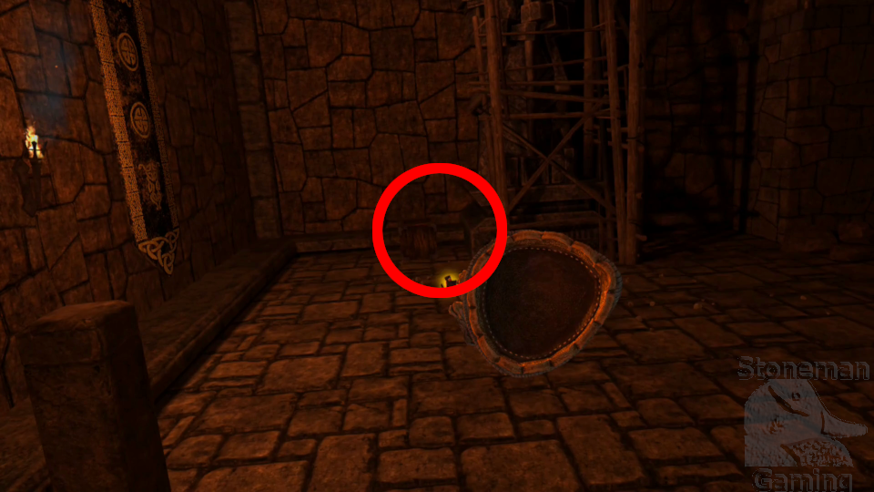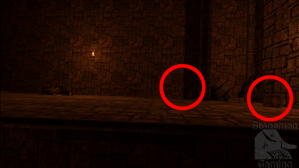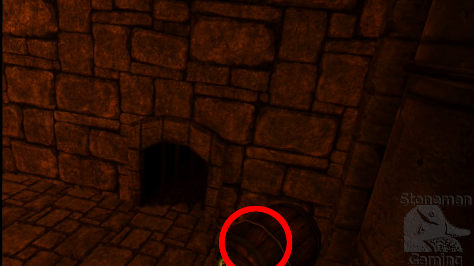 - On the first floor, make your way to the alcove opposite the row of levers. Smash the barrel inside for these coins.