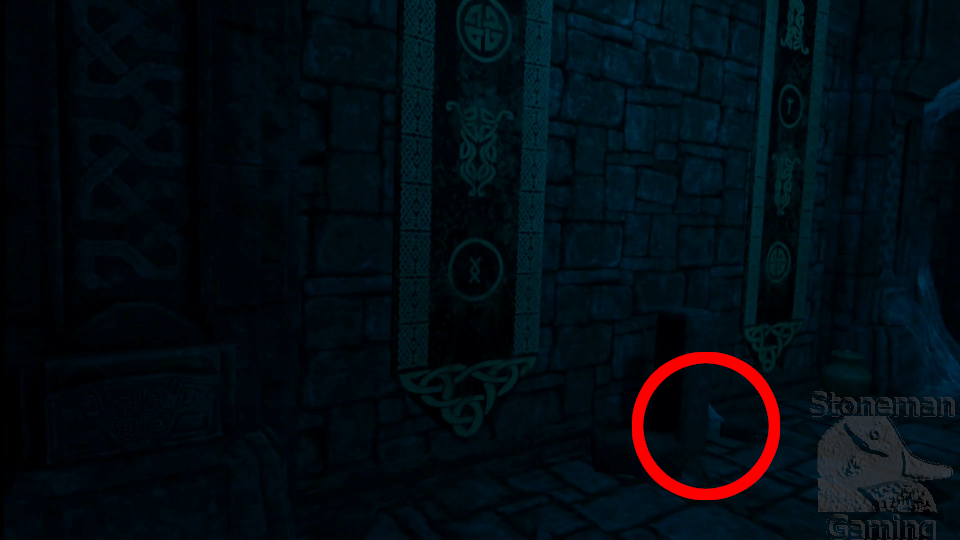 - Also on the third tier, cross the water and break the green pot at the base of Odin's pedestal.