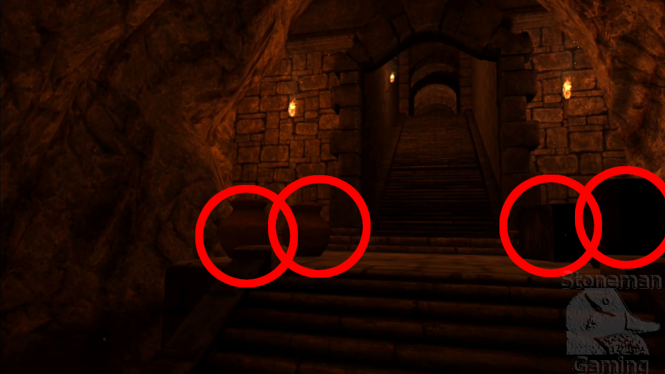 - As previously mentioned, the PCVR version has two extra breakable objects here for coins.